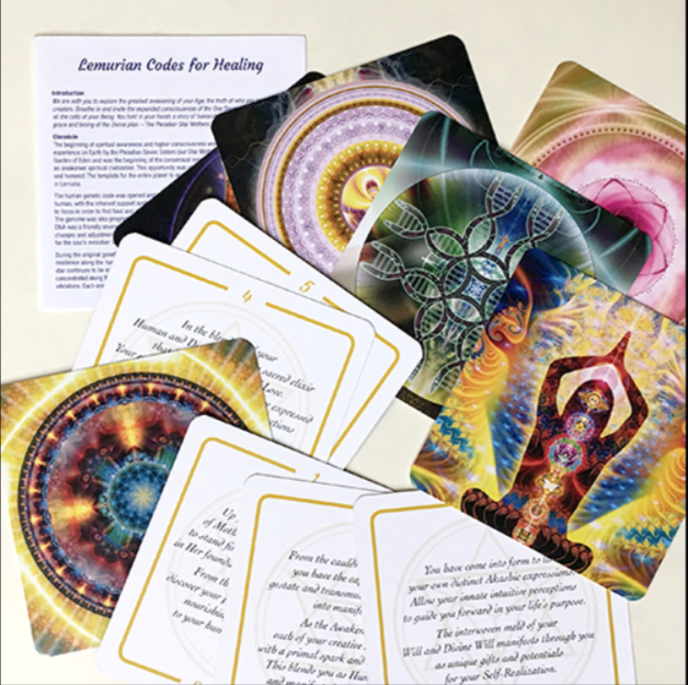 Los Códigos Lemurianos para la Sanación, son los fundamentos de un sistema para volver a despertar Las Activaciones Estelares Codificadas originales, dadas a la humanidad como regalo sagrado de los pleyadianos hace mucho tiempo. Los códigos han sido energéticamente colocados en 11 cartas, con imágenes y palabras, y están programadas por medio de la Merkaba cristalina para conectar los puntos físicos del cuerpo donde está almacenada la información de la Plantilla Estelar, esperando para evocar el recuerdo akáshico.